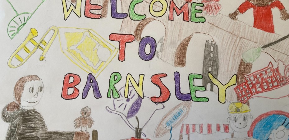 As part of Refugee Week in June 2022, schools across Barnsley took part in a ‘Welcome To Barnsley’ art competition which saw 7 schools submit over 200 pieces of work. These are being projected in the Barnsley Museums Digital space in the Glass Works during the first week of August.
