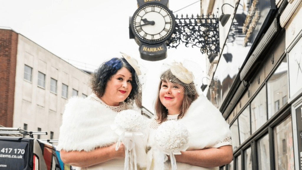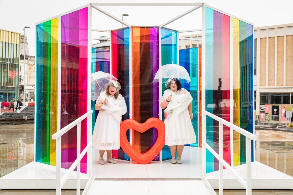 The Eldon Street Brides are the creations of artists Becky Newbould and Gemma Whelan, also known at the WE Great Ladies. They were commissioned as part of the Eldon Street High Street Heritage Action Zone and undertook 12 micro-residencies with independent businesses on Eldon Street and the Victorian Arcade. The Brides were inspired by the stories of Eldon Street shops like Benj Harral jewellers and Frank Bird outfitters who sold wedding rings and wedding suits to generations of loved-up Barnsley couples. As they chatted to people, they also added the stories they heard to their dresses, to create a living story-book of Eldon Street.
