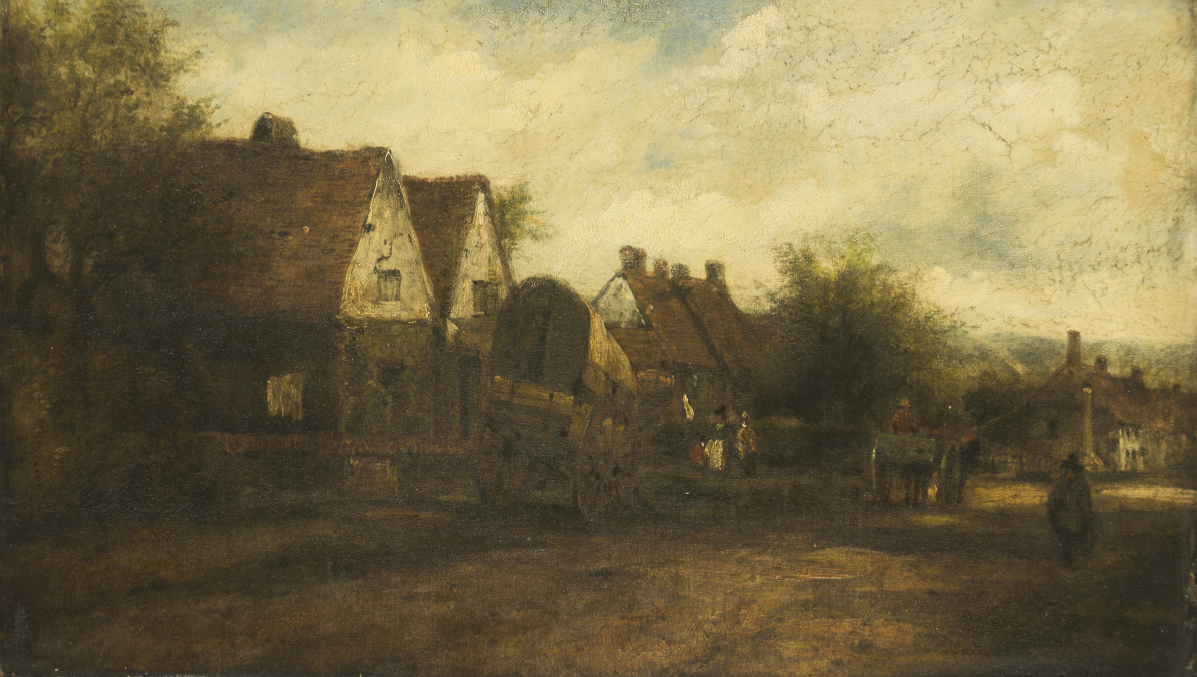 Watts was known in his own time and since as an admirer and follower of the great British landscape painter John Constable (1736-1837). They both lived in the same area of Hampstead but Watts was considerably younger. His landscapes do show the clear influence of Constable but whether they ever met is unclear. The conservation treatment carried out on this small landscape has revealed a scene not unlike those by Constable, with its honest view of a rural village and tones of green and brown.